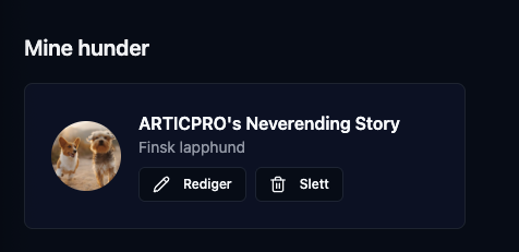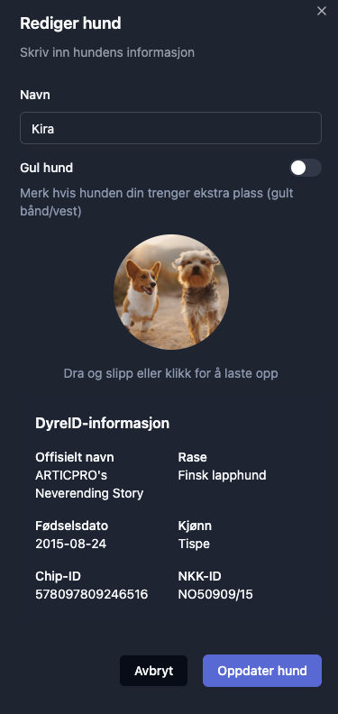 Endre Navn til hundens kallenavn og trykk "Oppdater hund"