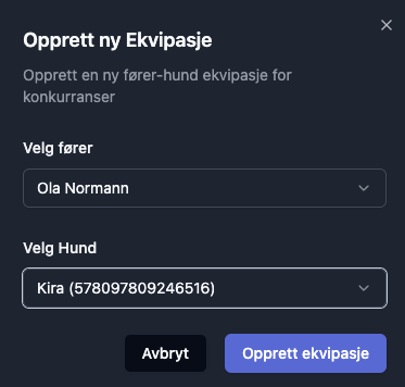 For å kunne konkurrere i Nosework må du ha en ekvipasje bestående av en hund og en fører. Har du ikke lagt til hund (og eventuelt fører) må du gjøre dette først, se egne artikler for dette.